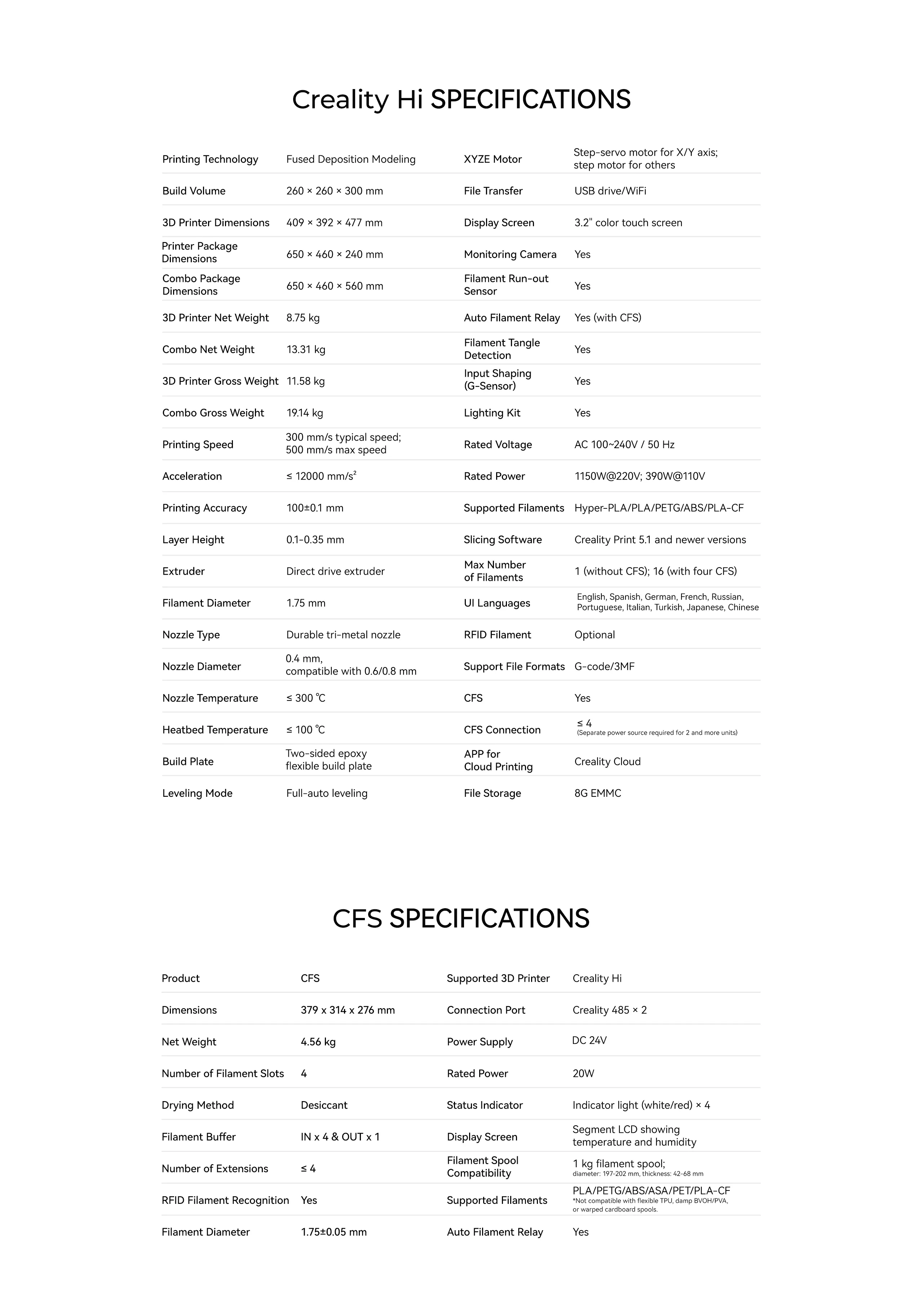 - تقنية إدارة المواد متعددة الألوان (CFS): تتميز بتقنية Creality Filament System (CFS) التي تدعم الطباعة بأكثر من لون في وقت واحد، حيث يمكن ربط عدة وحدات للحصول على ما يصل إلى 16 لوناً في طبعة واحدة – مما يفتح آفاقًا جديدة للإبداع والتفاصيل الدقيقة.
